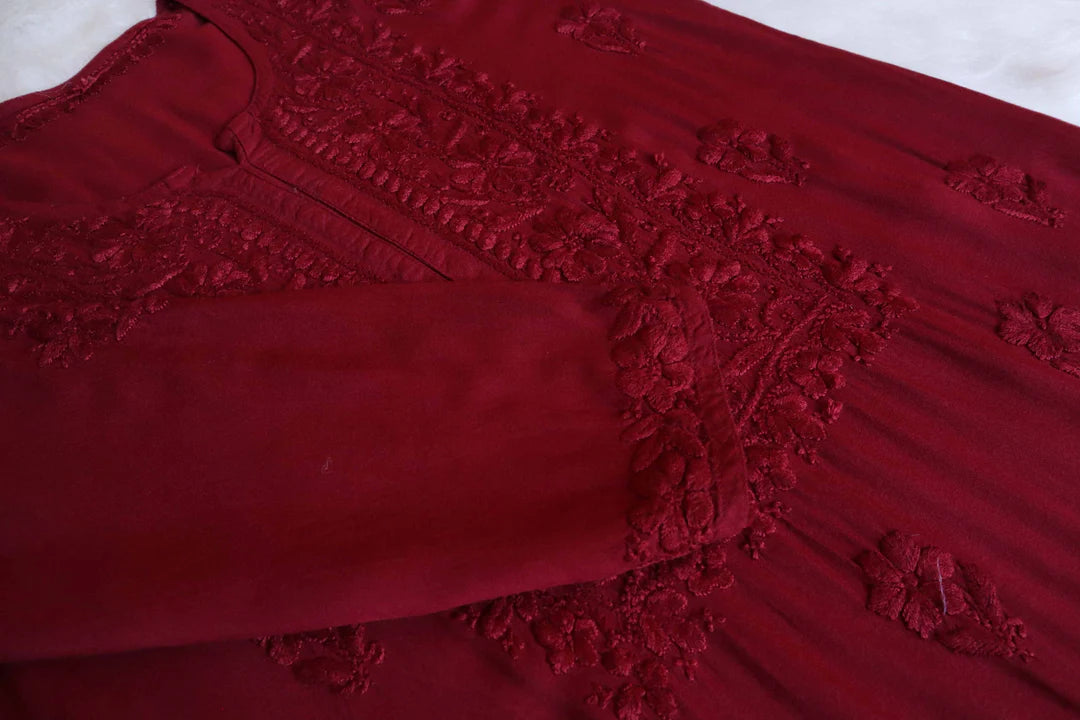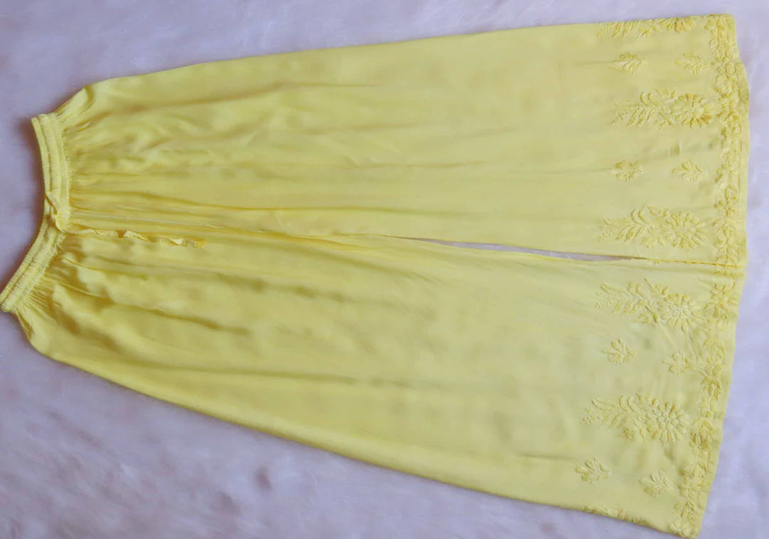 An elegant rayon chikankari piece, beautifully handcrafted with self-toned embroidery in floral patterns. Available as a coord set with matching palazzo — making it a versatile choice for both casual gatherings and festive occasions.