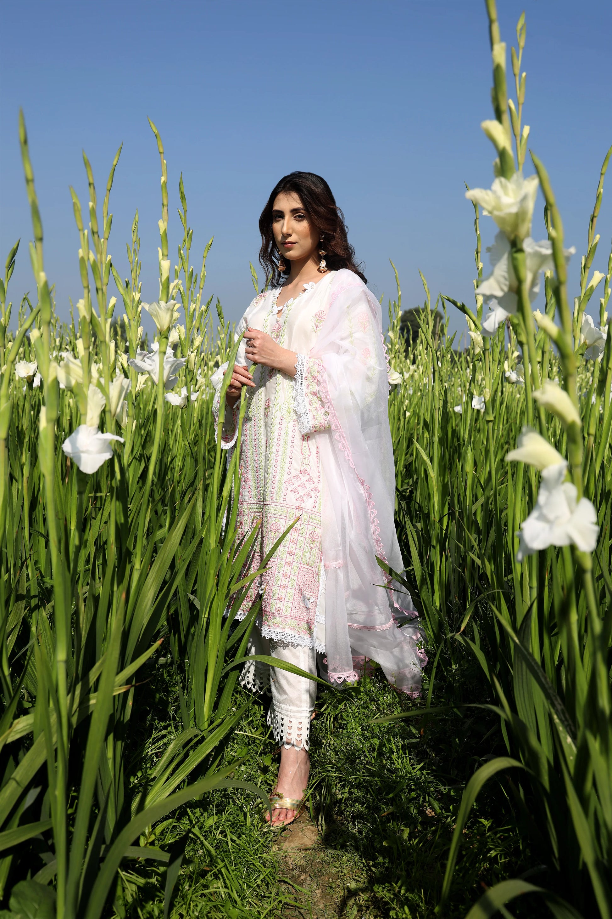 It is a harmony of contrasts—where delicacy meets precision, where heritage intertwines with contemporary grace. Like a quiet garden in full bloom, this ensemble speaks in whispers of craftsmanship, each detail carrying the essence of timeless elegance.