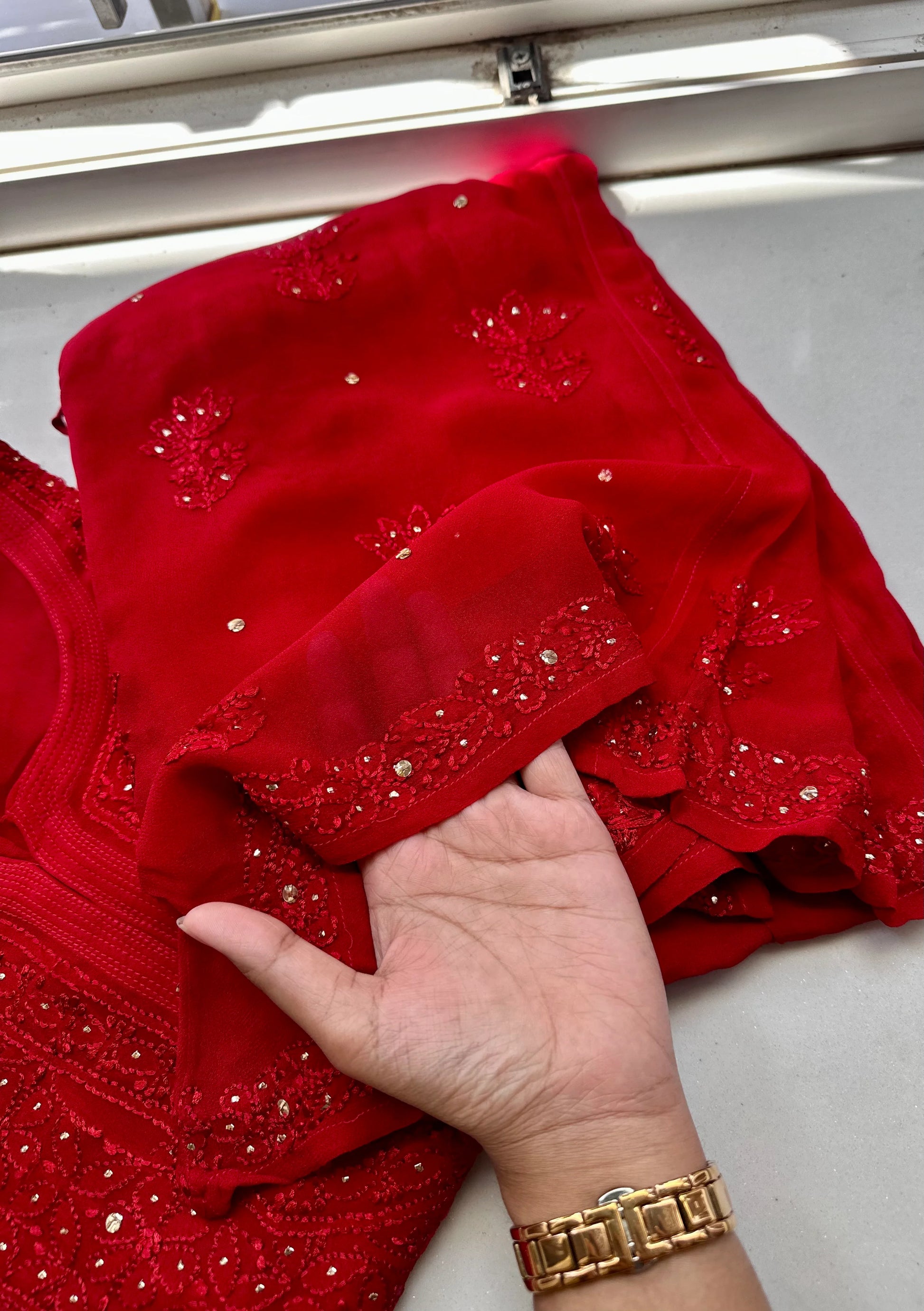 Includes: Kurta or Coord or Full suit (as per selection) Fabric: Pure viscose georgette with add-on Mukaish/Badla work
