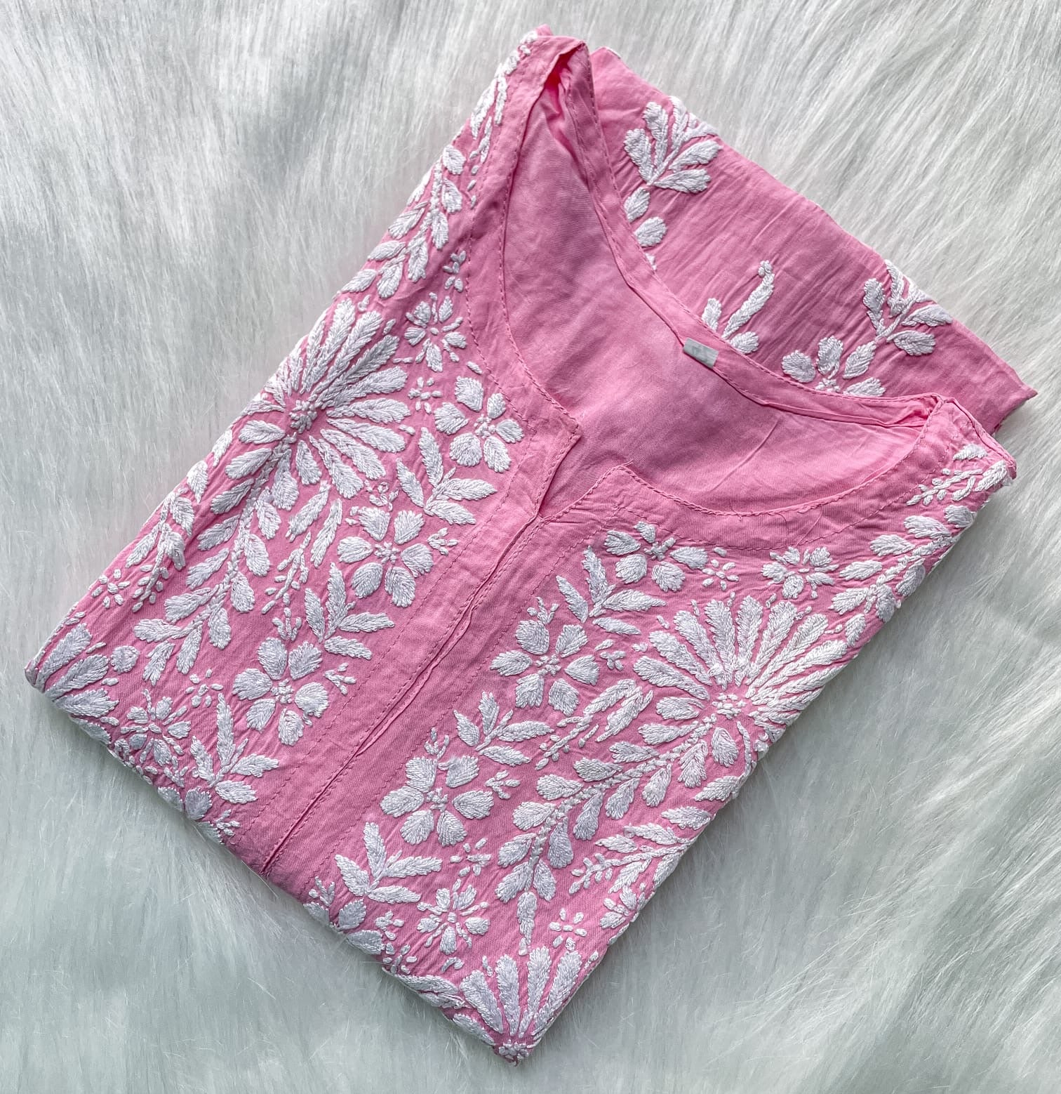 Step into sophistication with our Premium Heavy Work Chikankari Modal Kurti. Made from high-quality soft modal, this 44-inch masterpiece boasts intricate chikankari work on every inch.