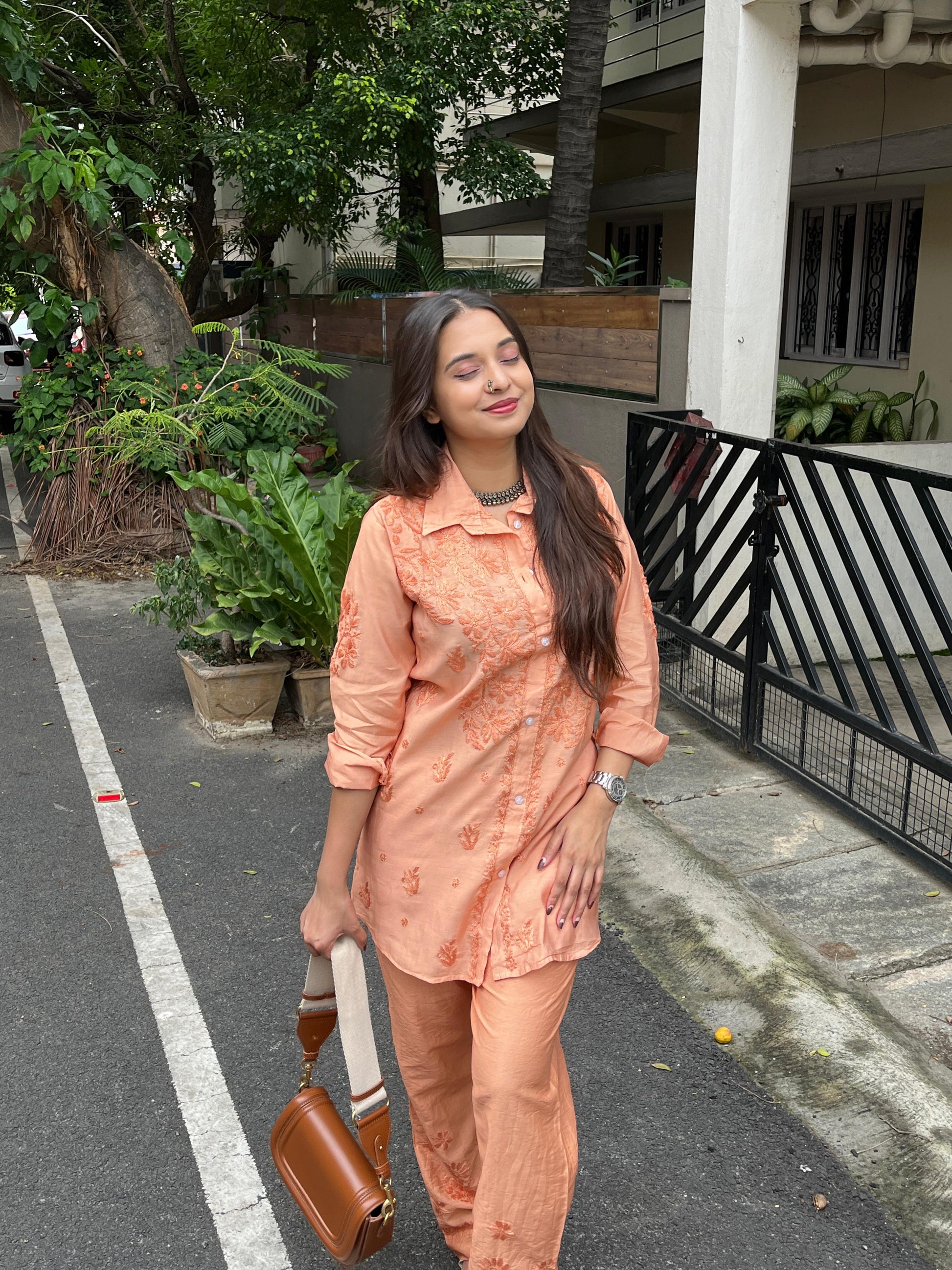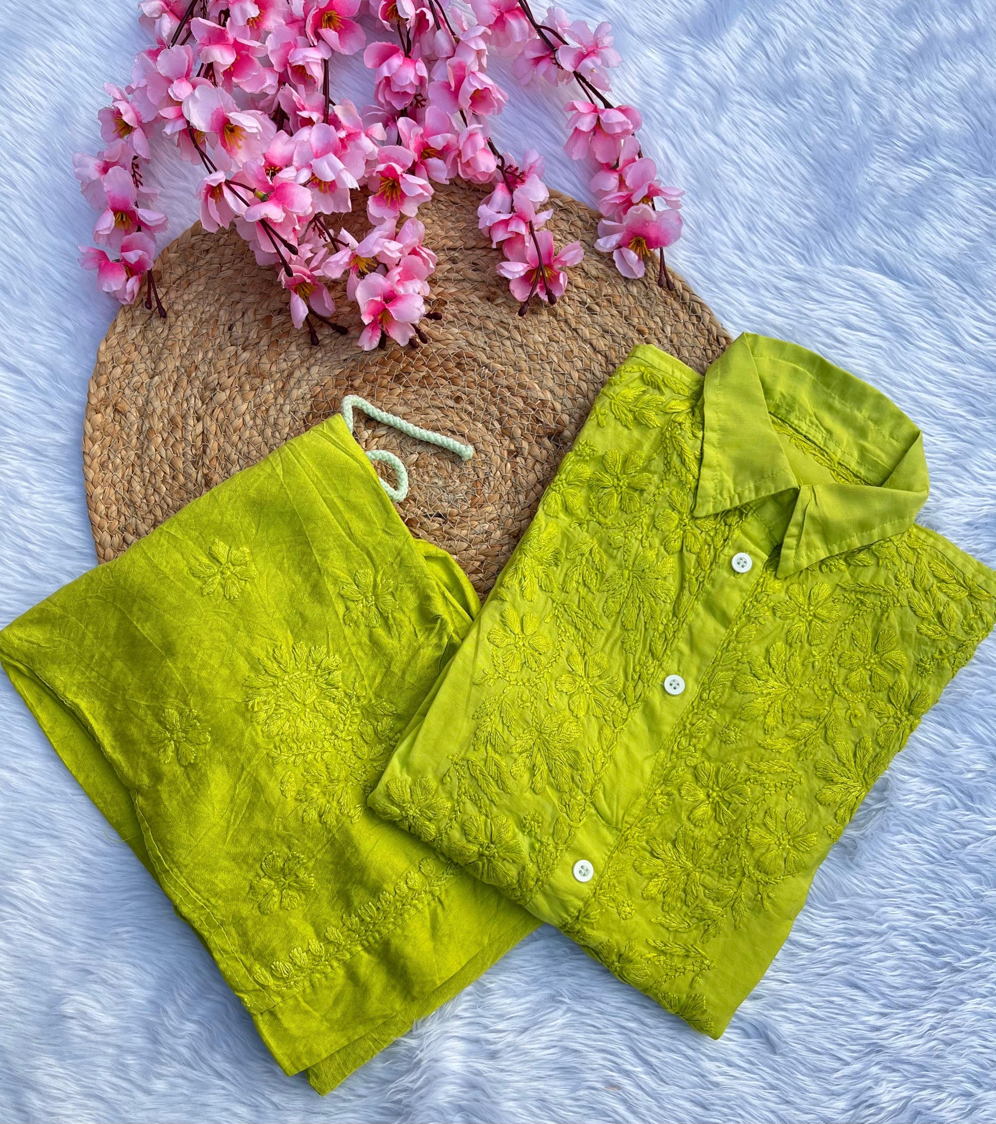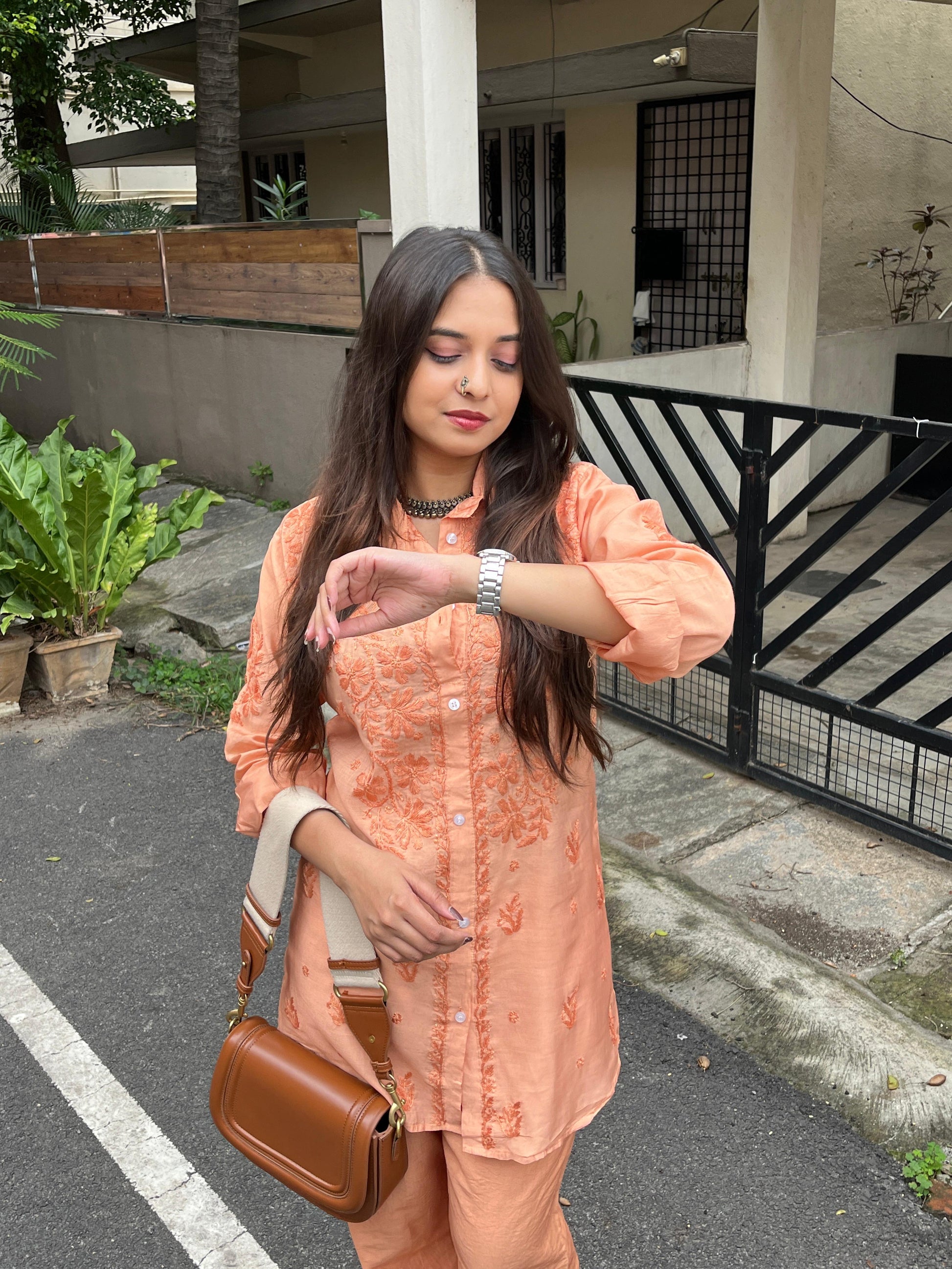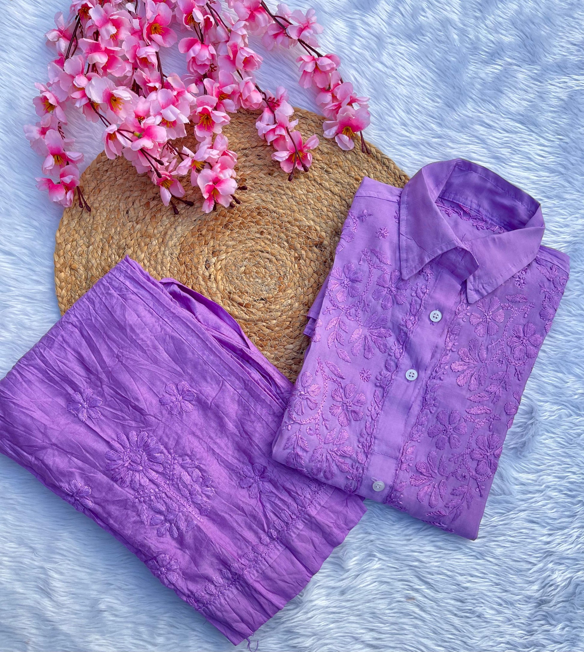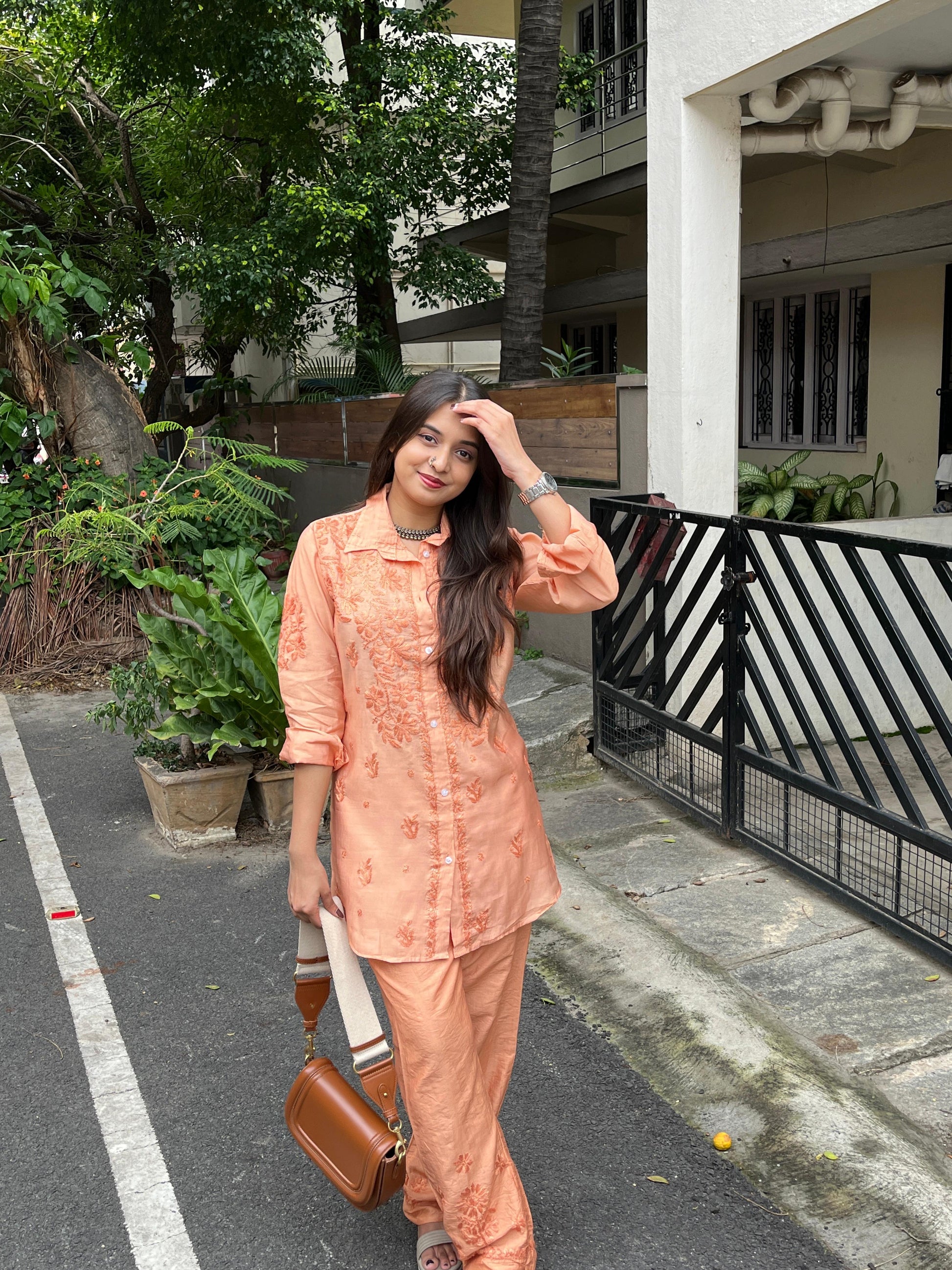 Introducing our top-selling Pure Chanderi Double Office Wear Shirt Co-ord Set, perfect for a sophisticated and comfortable office look. Crafted from high-quality Chanderi fabric, known for its lightweight and luxurious feel, this set combines elegance with ease, making it a great choice for professional settings.